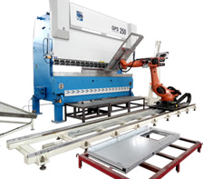 鋁單板、法瑯彩工藝、碳鋼板等不同型面、大工件的機械手折彎加工。